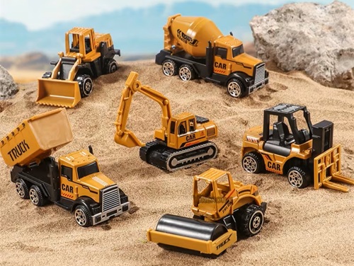 6pcs Set of Realistic Model Construction Vehicle Toys - Durable Alloy Metal Trucks, Excavator, and Loader