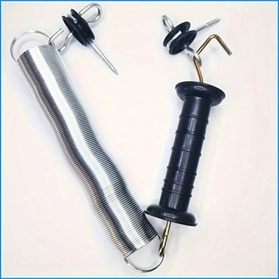 5-Meter Extendable Electric Fence Gate Kit with Tension Spring, 2 Double Hook Anchors and Insulated Handle- Metal Farm Fence Stretchable Spring Gate Set for Livestock Fencing Systems