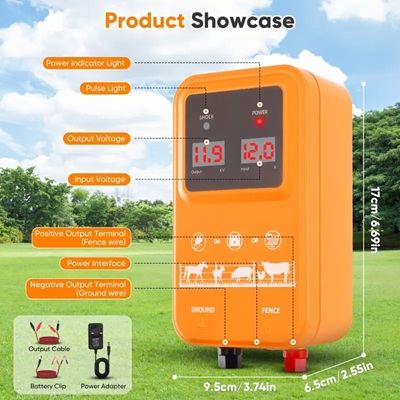 Electric Fence Energiser 12V With LED Display, Electric Fence 2J Output for 10Km Range, 3 Ways Power Supply, Waterproof Electric Fence Charger for Protection of Livestock, Pets, Poultry, Horses